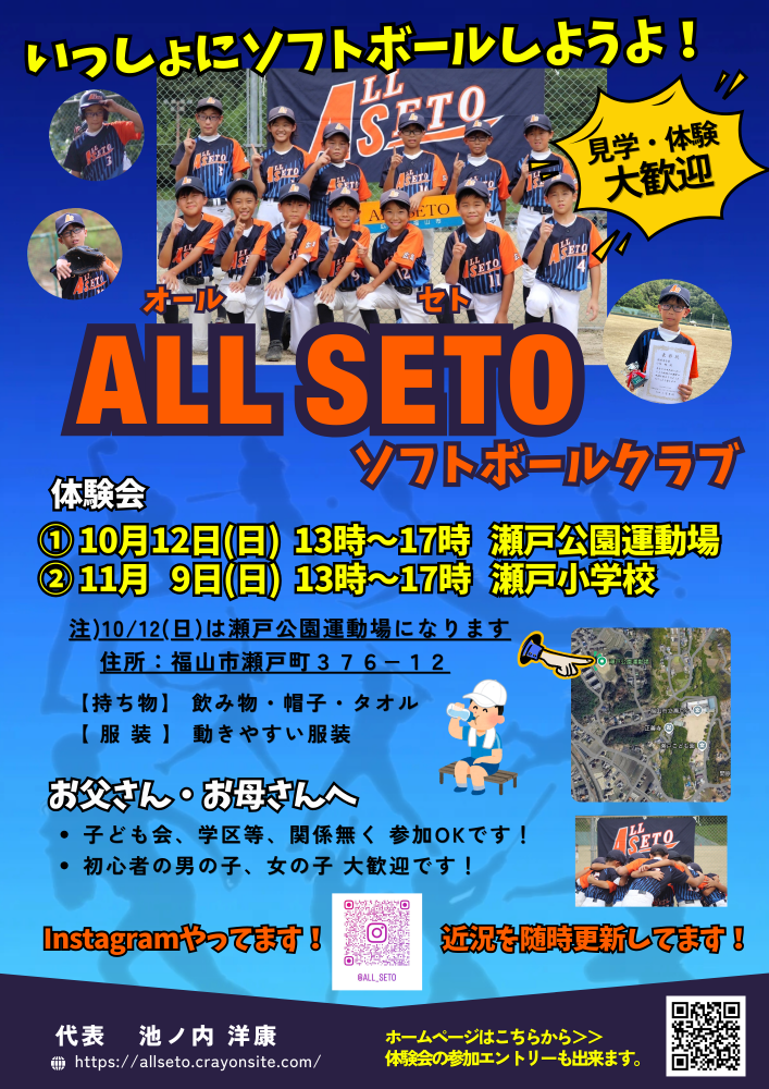 皆さん、はじめまして。ソフトボールクラブチームのALL SETO(オールセト)です。